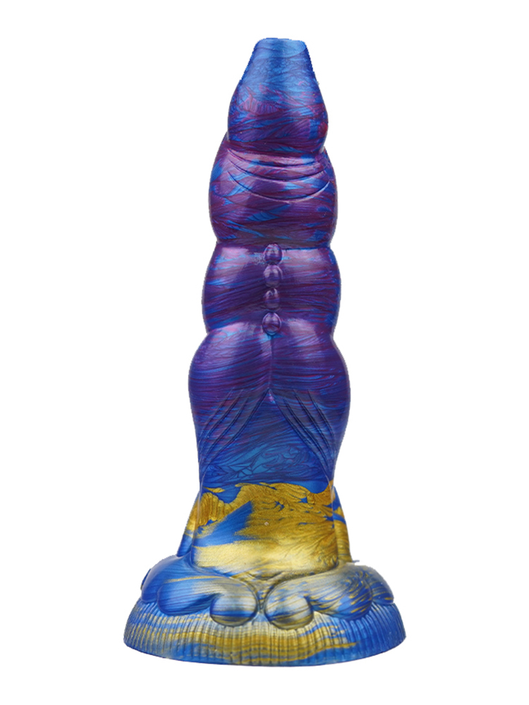 Ribbed Purple, Blue & Gold Alien Dildo 6.5 Inch