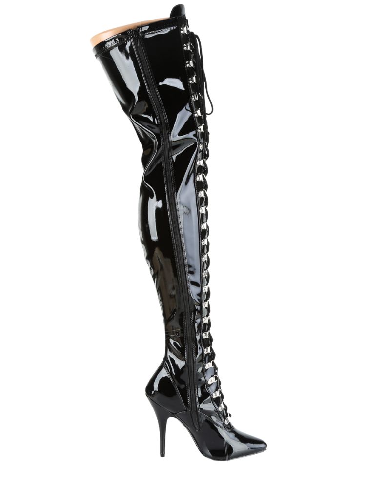 Seductive 5″ D-Ring Patent Thigh High Boots – Black Fetish Heels (9-11)