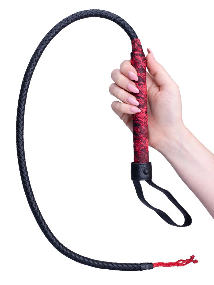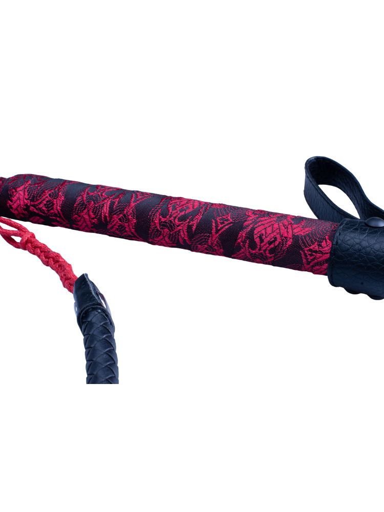 With its luxurious, tightly braided faux leather shaft and a deep red patterned handle wrapped in textured satin, it’s as visually striking as it is effective. The whip responds to every flick with satisfying precision—light teasing swats or sharper sensations, you decide.
