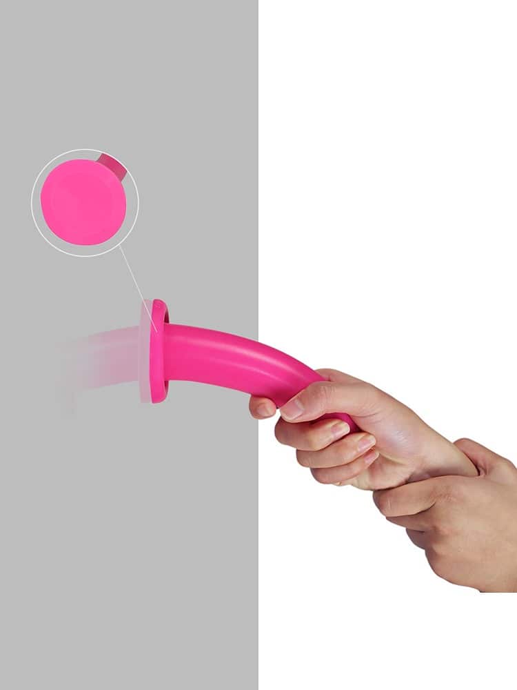 When used without a strap-on harness this toy has a suction cup on the bottom for a hands-free experience (just take care when you remove it from whatever surface you’ve stuck it to, don’t be too rough).