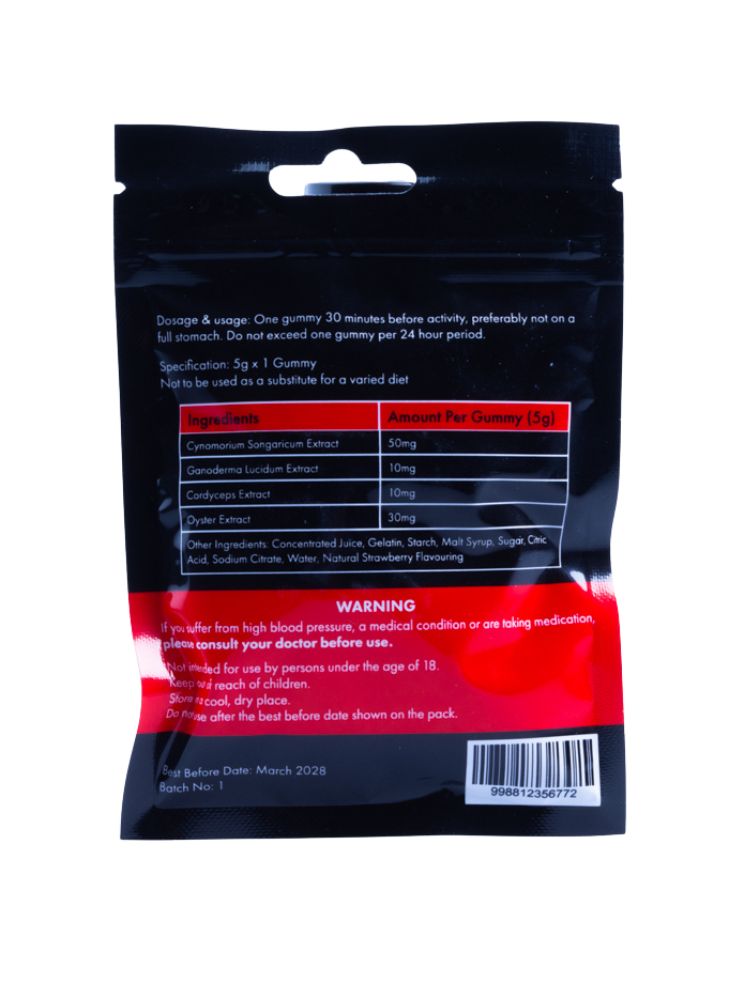 Each gummy is packed with performance-focused herbal extracts traditionally used to support vitality, circulation, and endurance. Just pop one 30 minutes before action and let the powerful blend do its thing.