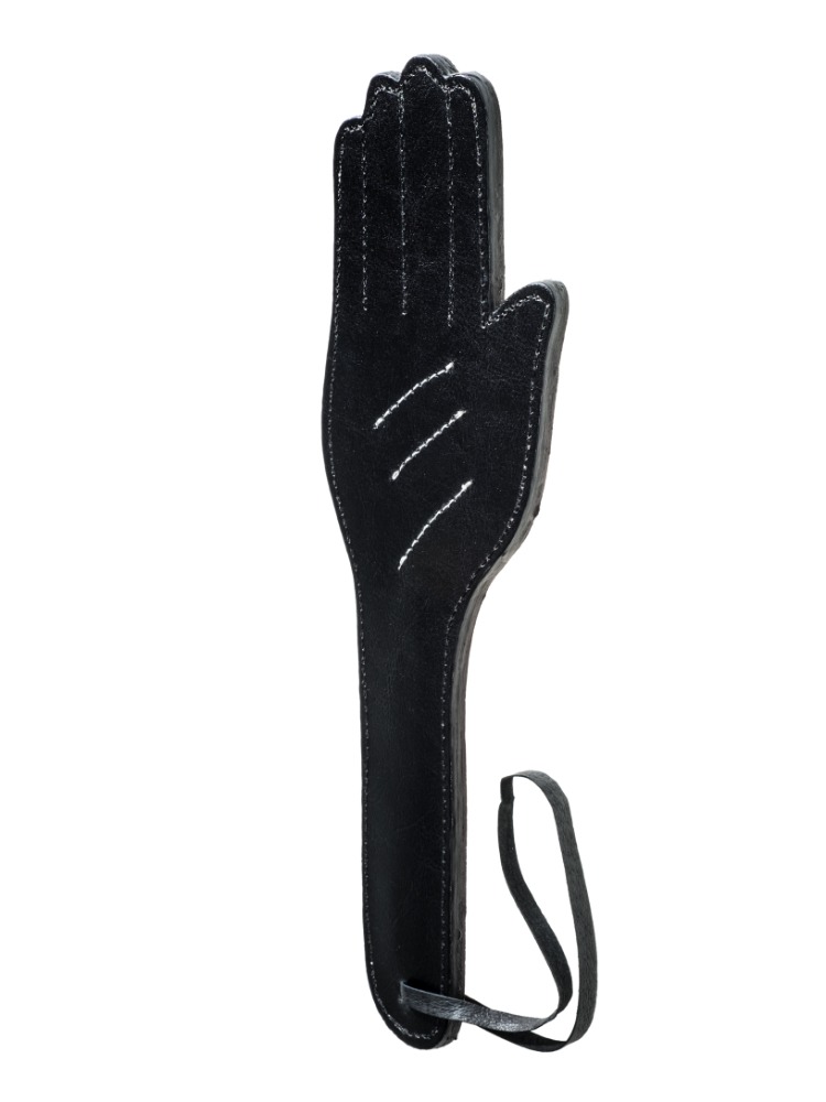 Whether it be teasing taps to arouse the skin’s nerves or a well deserved spanking that leaves a souvenir for the recipient to admire in the mirror, this hand-shaped paddle will administer whatever treat or punishment they deserve.