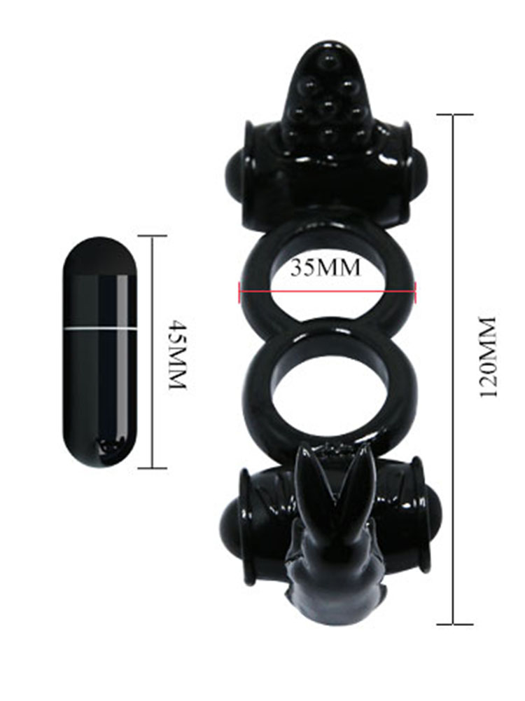 This 2-in-1, Tongue vs Ears Vibrating Cock Ring (with 2 mini vibrating bullets) allows you to flit between the two most popular styles of vibrating cock ring: at one end this contraption features a small, protruding knobbly/dotted tongue, at the other end sits the now-classic rabbit ears. Styles make fights, this promises to be a good one!