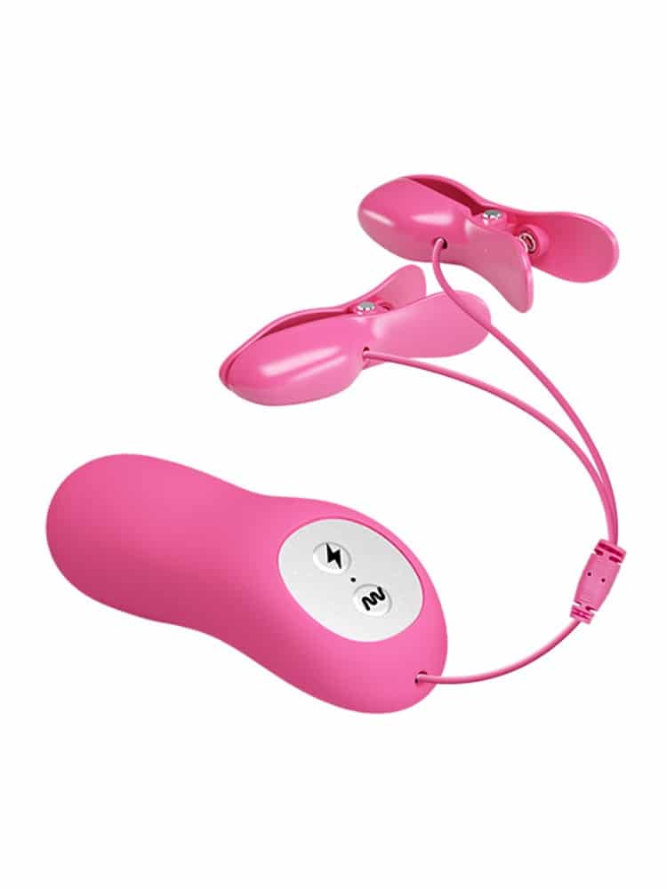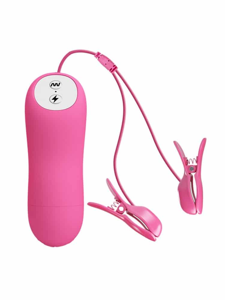 Vibrating Pink Nipple Clamps with Electro Stimulation Feature