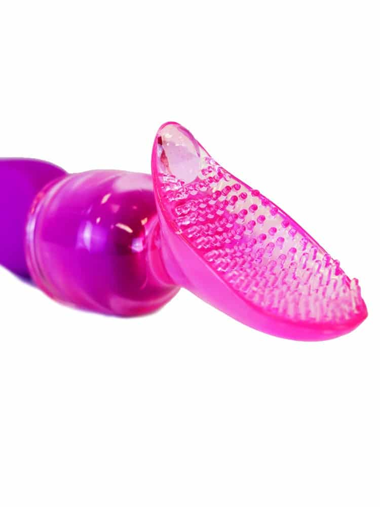 The play area is covered in nodules; when slathered in lube and brushing back-n-forth against the skin they enhance the sensation the clit will experience.