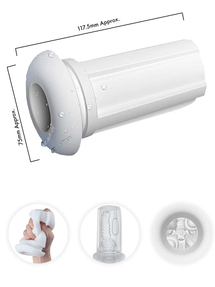 - Soft, body-safe sleeve with textured inner canal for heightened sensations.